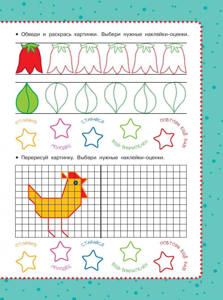 Рисуем по клеточкам и точкам серии "Тренажёр с наклейками для умных малышей"