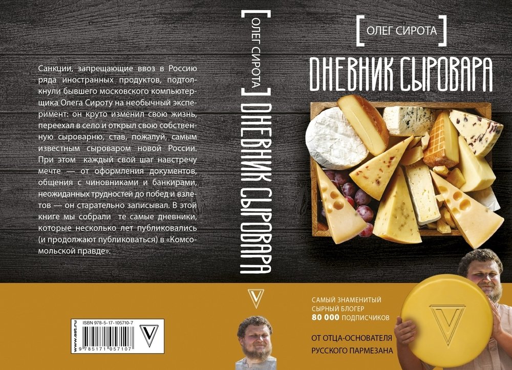 Санкции, запрещающие ввоз в Россию ряд иностранных продуктов, подтолкнули бывшего московского компьютерщика Олега Сироту на необычный эксперимент: он круто изменил свою жизнь, переехал в село и открыл свою собственную сыроварню, став, пожалуй, самым известным сыроваром новой России. При этом свой каждый шаг навстречу мечте, — от оформления документов, общения с чиновниками и банкирами, неожиданных трудностей до побед и взлетов, — он старательно записывал. В этой книге мы собрали те самые дневники, которые несколько лет публиковались (и продолжают публиковаться) в "Комсомольской правде".