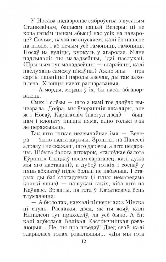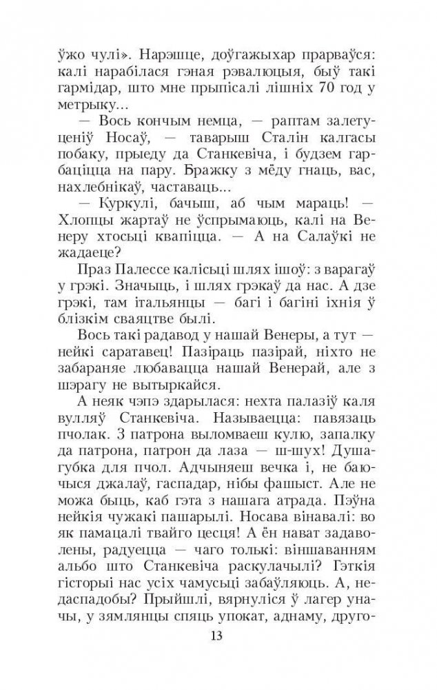 У аповесці Алеся Адамовіча «Венера, або Як я быў прыгоннікам» шмат аўтабiяграфiчнага, аўтарскага. У споведзi безыменнага героя разгортваецца кароткае жыццё Венеры Станкевiч, паказваецца яе трагедыя, што ў асноўным паўтарае трагедыю беларусаў. Гэта твор-пакаянне, дзе адлюстраваны працэс «разліку з мінулым».