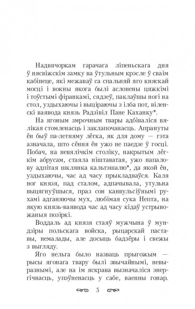 У адным з самых беларусацэнтрычных твораў — гістарычнай аповесці "Кароль у Нясвіжы. 1784"— расказваецца пра паездку на сейм у Гародню апошняга вялікага князя літоўскага і караля польскага, нашага земляка Станіслава Аўгуста Панятоўскага. Падчас падарожжа ён спыняўся ў Нясвіжскім палацы наймагутнейшага магната Рэчы Паспалітай Караля Станіслава Радзівіла, знакамітага Пане Каханку, які наладзіў Панятоўскаму неверагодна ўрачысты і фантасмагарычны прыём.