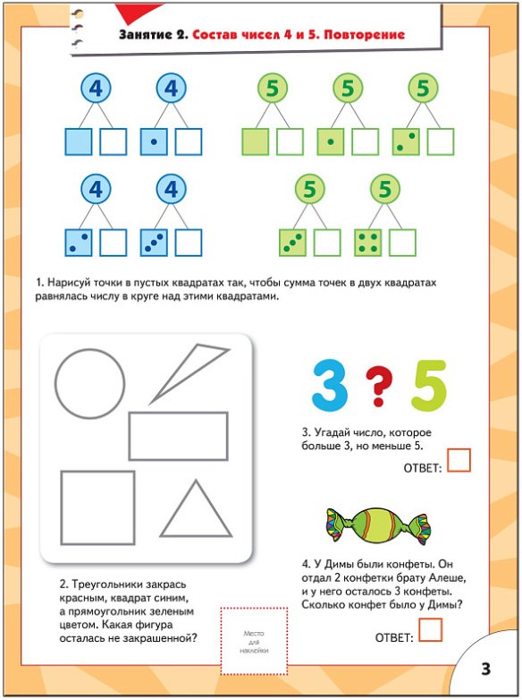 Счет, форма, величина. Для занятий с детьми от 6 до 7 лет. Книжка с игрой и наклейками