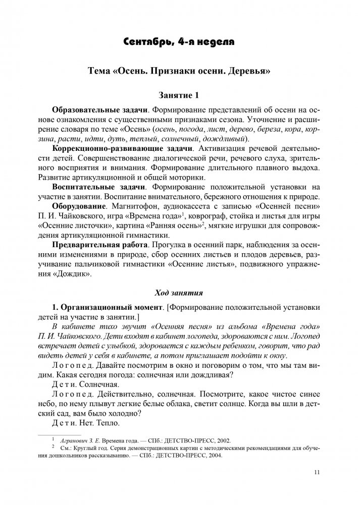 Книга содержит подробное изложение хода подгрупповых занятий логопедических занятий и описание методических приемов, используемых логопедом, цели и задачи в соответствии с заданной лексической темой. Каждое занятие содержит от шести до десяти этапов: игры, задания и упражнения для развития общих речевых навыков, слухового и зрительного внимания и восприятия, формирования и совершенствования лексического состава языка и грамматического строя речи, развития связной речи и речевого общения, фонематических представлений и навыков звукового анализа и синтеза, мимической, артикуляционной, тонкой, общей моторики и т.д. Для логопедов, воспитателей логопедических групп ДОУ.