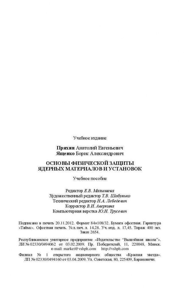 Основы физической защиты ядерных материалов и установок. Учебное пособие. Гриф МО Республики Беларусь