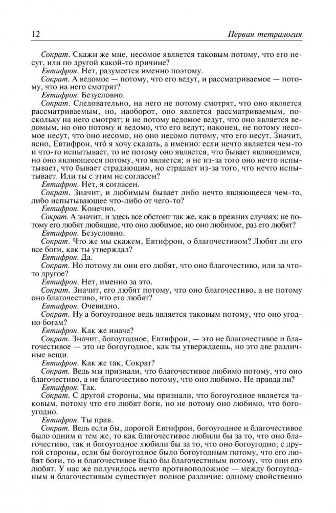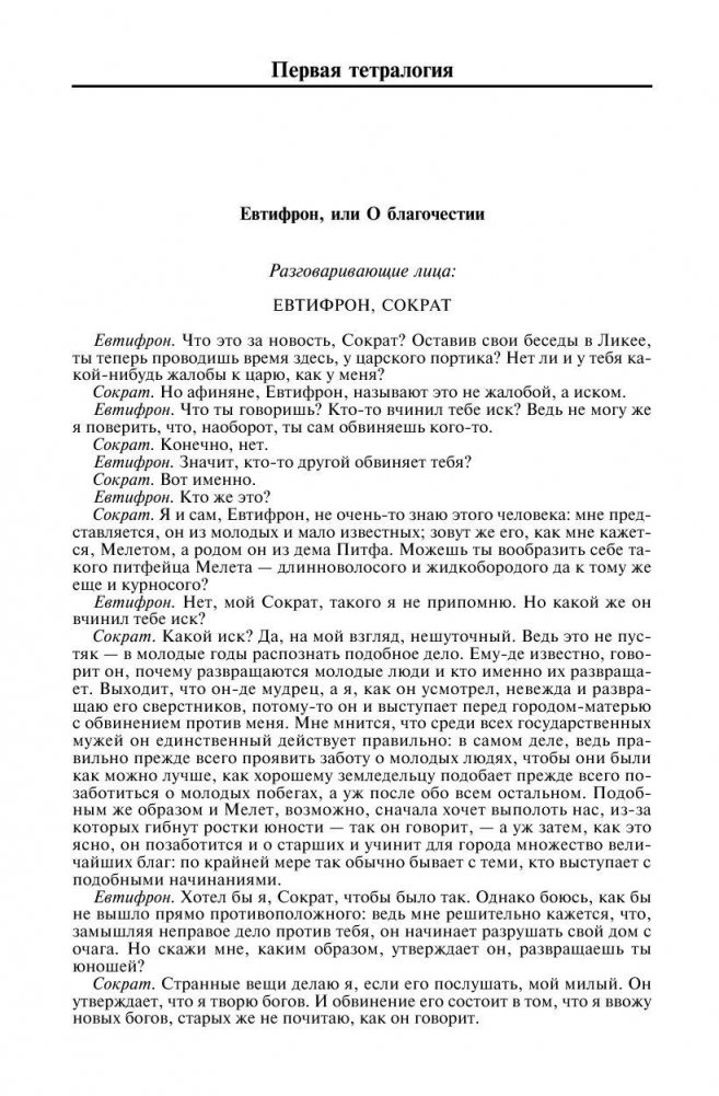 Платон (428/427 — 348/347 до н.э.) — величайший античный философ, ученик и друг Сократа, основоположник идеалистического направления в мировой философии, создатель системы научного мышления, оказавшей огромное влияние на развитие человеческого духа. В настоящем издании полностью публикуются все дошедшие до нас произведения Платона. 34 диалога, одна речь («Апология Сократа») и письма, адресованные его ближайшим оппонентам и друзьям, объединены в 9 тетралогий в соответствии с традицией, сложившейся еще в первые века нашей эры.