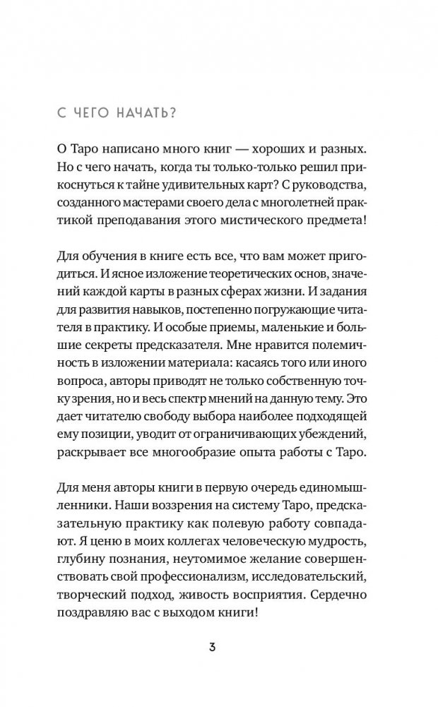 Карты Таро — одно из удивительнейших явлений человеческой культуры. В течение столетий маги, мистики и предсказатели использовали Таро как иллюстрированный учебник эзотерической мудрости. В этих картах есть магия, именно поэтому они столь притягательны. В них скрыта тайна, познание которой дарует великую силу — понимание человеческой души. Раскрыть заключенные в Таро смыслы вам поможет книга опытных тарологов и преподавателей с многолетним стажем, членов Российского Таро-клуба Нины Фроловой и Константина Лаво, посвященная в первую очередь использованию карт в предсказательной практике. Подробное и систематизированное изложение материала, обилие примеров из практики авторов, а также многочисленные практические задания делают эту книгу универсальным руководством как для начинающих тарологов, так и для опытных практиков, совершенствующих свое мастерство.