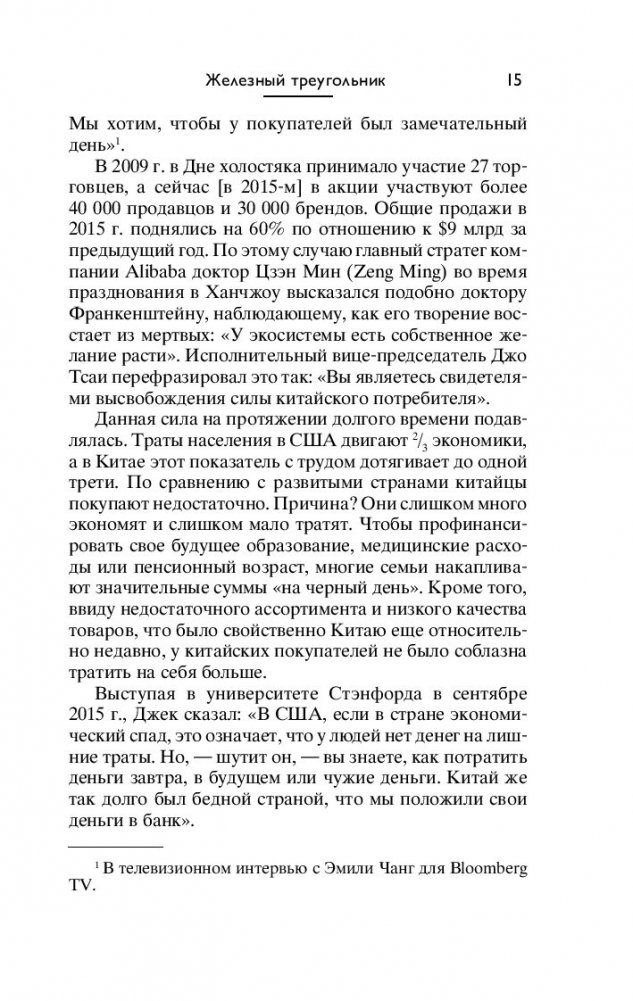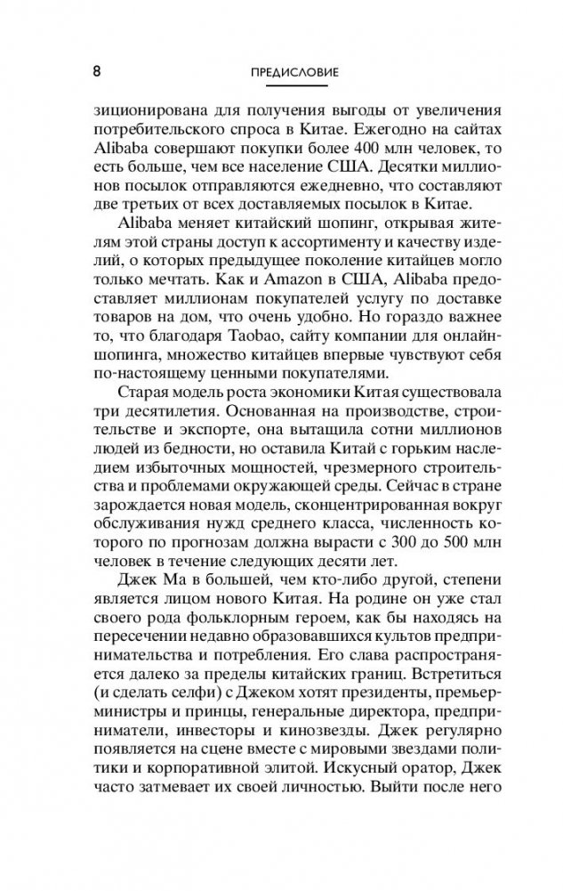 Инсайдерское откровение о том, как один человек построил мировую корпорацию, способную противостоять таким гигантам, как Walmart и Amazon. Всего за десять лет Джек Ма, бывший преподаватель английского, основал и построил Alibaba Group, в которую сегодня входят: Alibaba.com, Alibaba Pictures, AliExpress.com, Taobao.com, Tmall.com, Alipay и другие. Джек Ма — Рокфеллер?XXI века, акции Alibaba в 2014 году побили рекорды, достигнув 25 млрд. долларов. Перед вами история компании и самого Джека, иконы частного предпринимательства и привратника миллионов потребителей от китайского Ханчжоу до тверского Торжка.