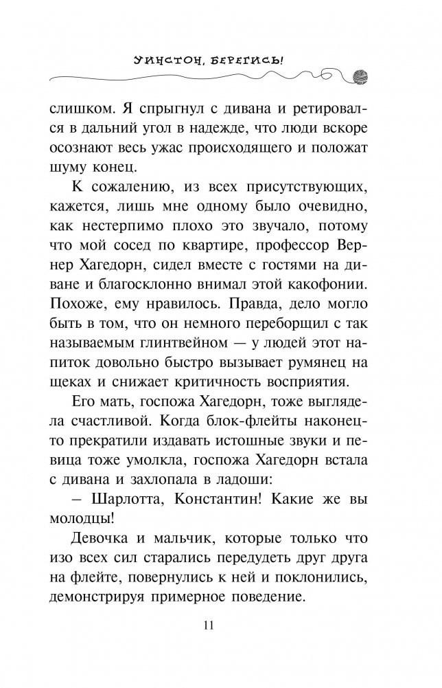 И все-таки этот семейный ужин Уинстон представлял себе по-другому. Противные племянники профессора Вернера, то и дело готовые схватить его за хвост, – что может быть хуже?! Но оказалось, что издевательства маленьких мучителей не самое страшное на свете. Ведь после ужина Уинстон чуть не умер от боли в животе.