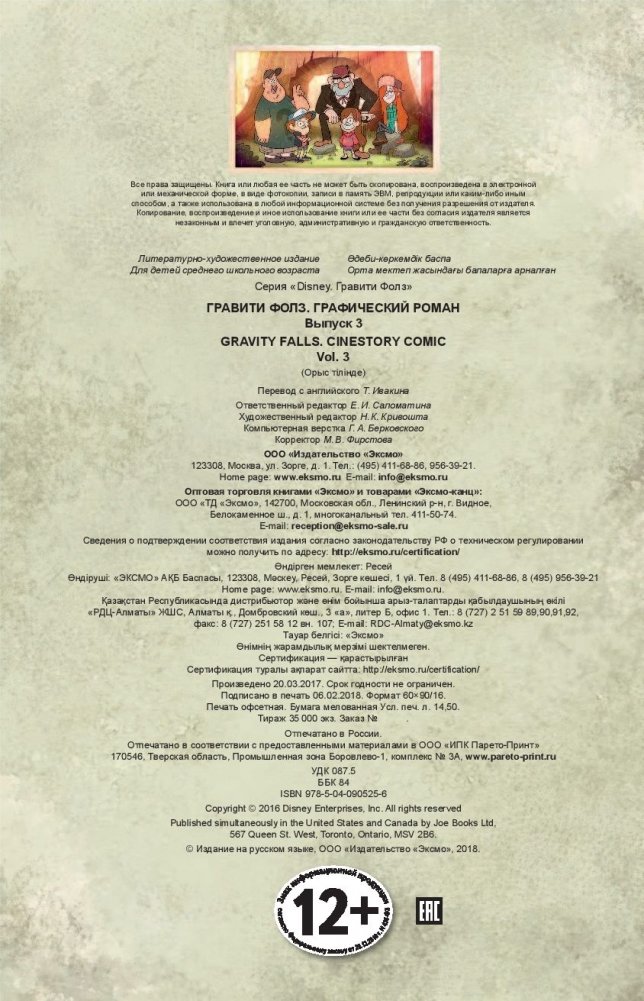 Графический роман "Гравити Фолз" — настоящая находка для любого из десятков тысяч фанатов МЕГАПОПУЛЯРНОГО анимационного сериала, который идет на телеканале Disney. Сюжеты 7, 8 и 9 серий первого сезона в формате комикса порадуют и тех, кто давно и серьезно "подсел" на истории о приключениях Диппера и Мэйбл, и тех, кто только знакомится с ними.