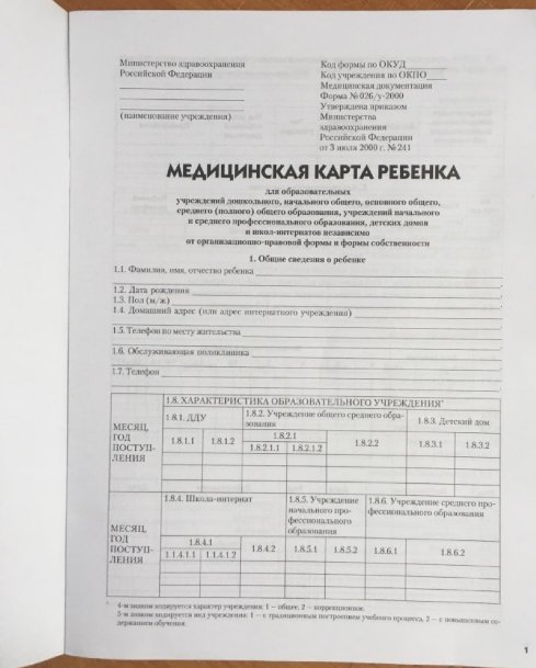 Медицинская карта ребенка для образовательных учреждений. Форма № 026/у