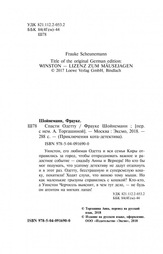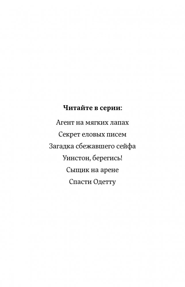 Уинстон, его любимая Одетта и вся семья Киры отправились за город, чтобы отпраздновать важное и радостное событие — свадьбу Анны и Вернера! Но кто бы мог подумать, что усатому детективу не дадут отдохнуть и в этот раз. Одетту, бесстрашную и суперсмелую кошку, похитили! Ходят слухи, что виною тому мыши. Но как маленькие грызуны справились с кошкой? Кто-кто, а Уинстон Черчилль выяснит, в чем тут дело, — не будь он агентом на мягких лапах!