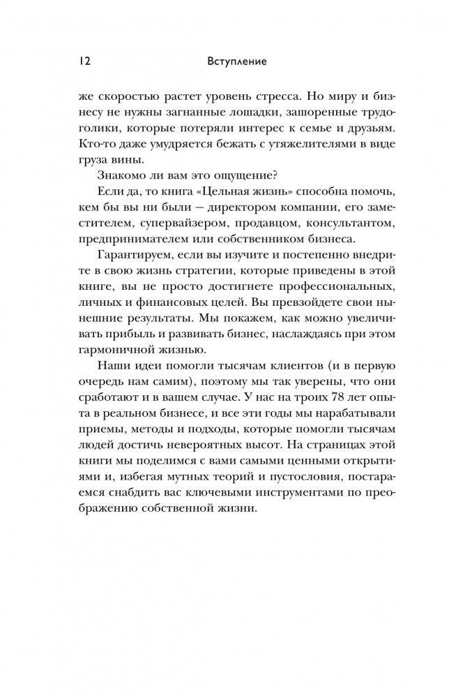 Основная причина, по которой у большинства из нас не ладятся дела, — расфокусированность. Мы отвлекаемся от выбранного курса, откладываем важное на потом и в итоге под разными предлогами отказываемся от достижения цели. Авторы "Цельной жизни" предлагают 10 ключевых стратегий, которые помогут сосредоточиться на главном и добиться своего. Эта книга, проданная общим тиражом 600 000 экземпляров, выдержала десять переизданий на английском языке и сейчас переживает второе рождение на русском. Ранее она выходила в сокращенной и заметно переработанной версии. Новый вариант максимально приближен к оригиналу. Он дополнен вдохновляющими историями и техниками, не вошедшими в предыдущее издание.