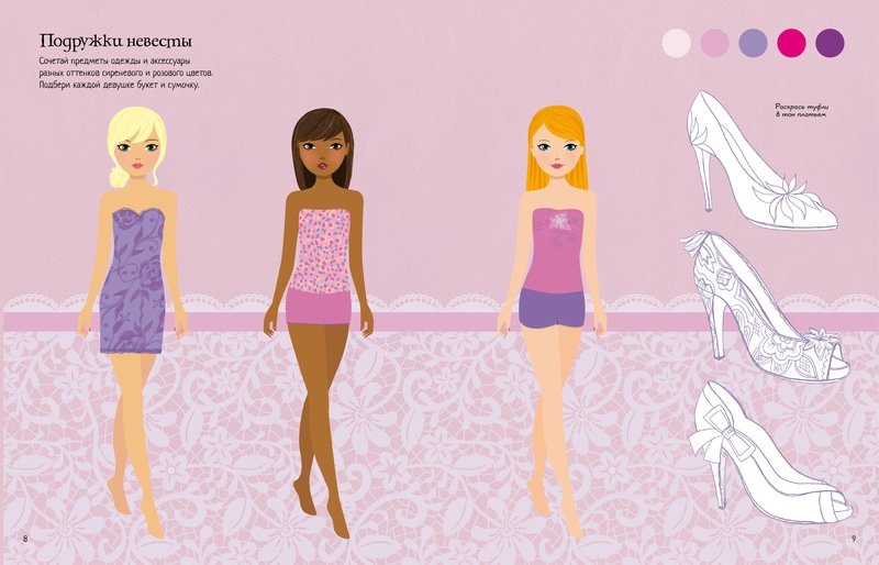 Свадьба – чудесное событие! Подбери невестам эффектные платья, фату и букеты для этого особенного дня. Ты также сможешь нарядить подружек невесты и гостей! Читаем и играем! Развиваем внимание, воображение, мелкую моторику и художественный вкус.
