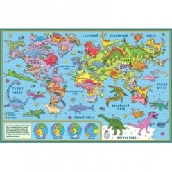 Настольная карта мира "Динозавры", детская (без ламинац...