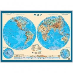 Физическая карта мира. Карта полушарий. Настольная карт...