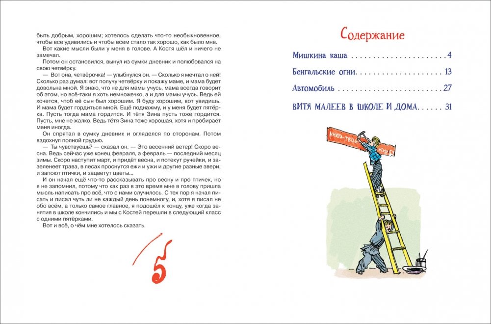 В книгу вошли самые известные веселые рассказы Николая Носова: «Мишкина каша», «Бенгальские огни», «Автомобиль», а также повесть «Витя Малеев в школе и дома». Герои Носова самые обыкновенные ребята, которые то и дело попадают в самые необыкновенные переделки; они любопытные, изобретательные, любят пошутить и всегда приходят на помощь друзьям. Классические иллюстрации А. Каневского.