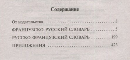 Издание дополнено таблицей неправильных глаголов (с основными их формами). Завершают словарь полезные приложения, среди которых «Буквы и звуки», «Ложные друзья переводчика», «Разговорный французский», «Идиомы», «Управление глаголов», «Французские пословицы и поговорки» и др.