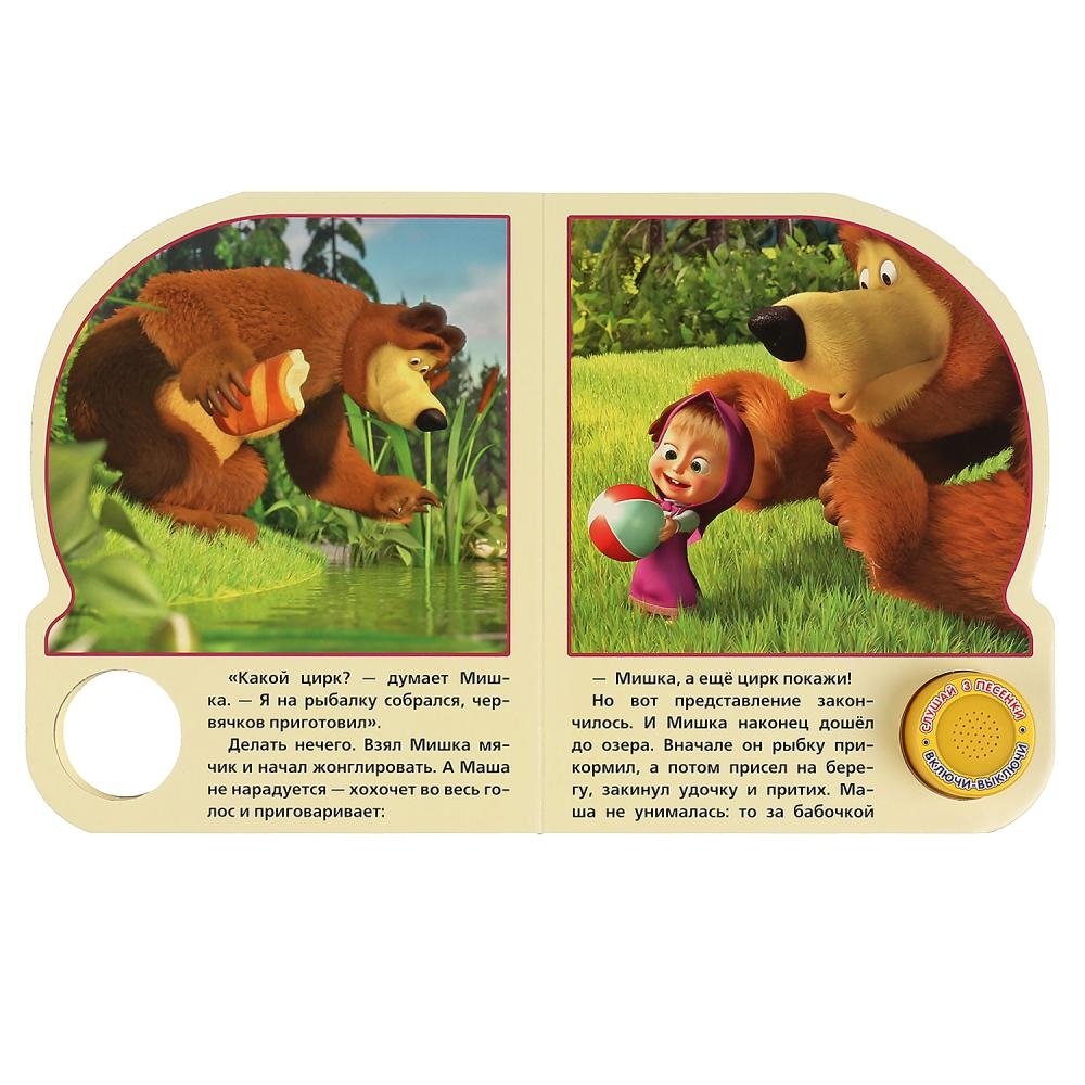 Компактная книга из прочного безопасного картона с кнопкой для прослушивания. Любимые авторы, народные фольклор, истории по мультфильма, и конечно, 3 песенки!