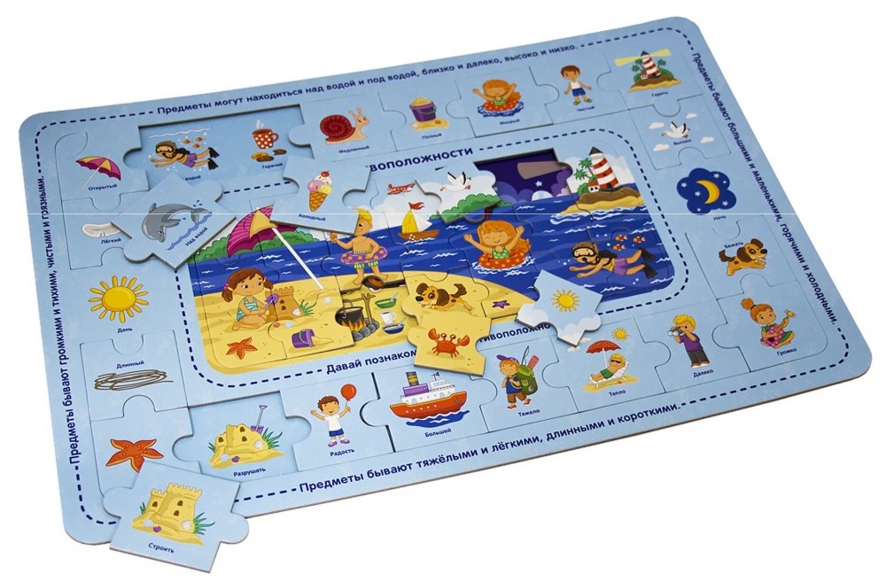 Развивающий пазл «Противоположности» создан для самых маленьких знатоков, который в увлекательной игровой форме поможет увеличить словарный запас ребенку, сформировать представления об окружающем мире, а также способствуют развитию речи, мышления, внимания и моторики.