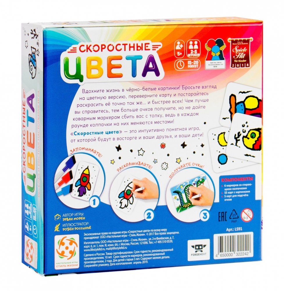 В комплект настольной игры "Скоростные цвета" входят: