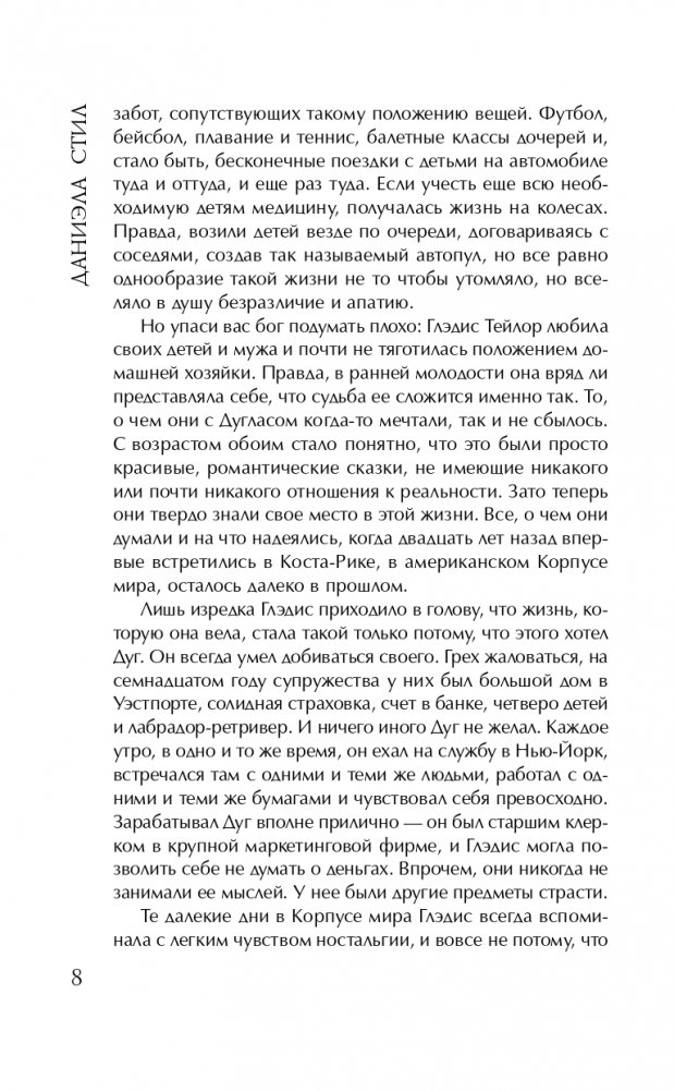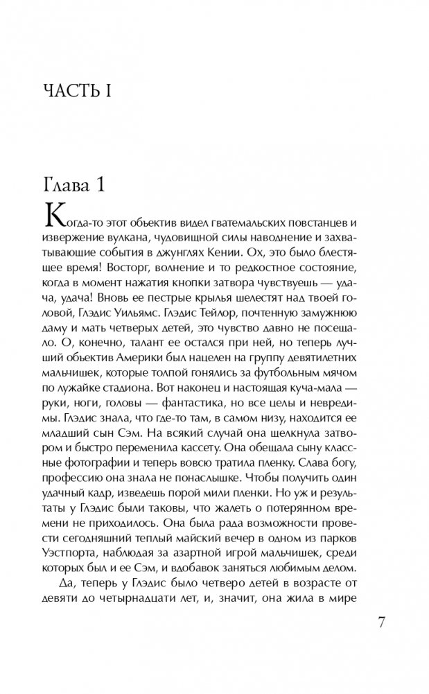 Глэдис Тейлор, мать четверых детей, жила в мире ухоженных газонов и аккуратно составленных календарей: футбольные матчи, уроки игры на фортепиано и летние каникулы в Кейп-Коде. Глэдис всегда верила в преданность и самопожертвование, так же как верила в Дугласа, мужчину, за которого вышла замуж 17 лет назад, дав обещание не только ему, но и самой себе. Ради брака она пожертвовала успешной карьерой фотожурналистки, и это было решение, о котором она никогда не жалела.