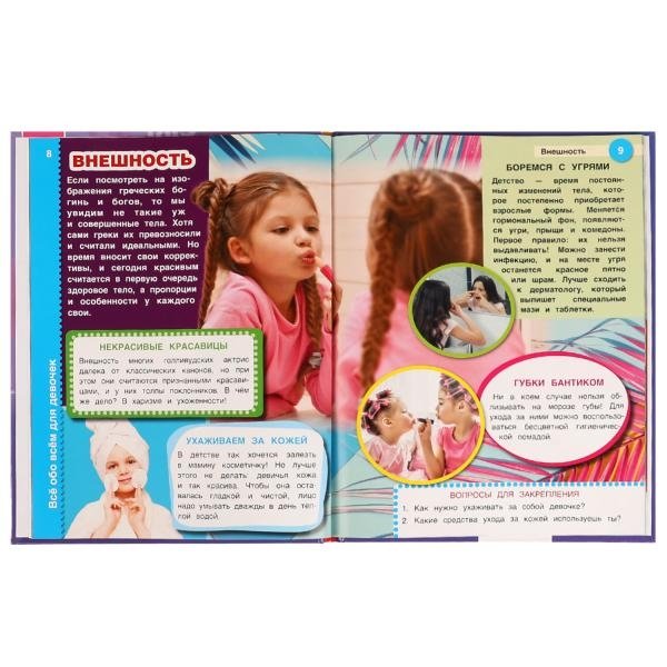 В этой занимательной энциклопедии собраны все самые интересные темы для юных леди: мода, здоровье и уход, кулинария и т.п. Зрелищные фото и удивительные факты увлекут девочку и помогут ей быстро, эффективно и с удовольствием усвоить новую информацию.