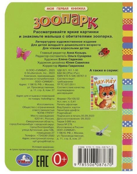 Книга «Зоопарк» из серии «Моя первая книжка» ТМ «УМка» непременно понравится маленькому любознайке: