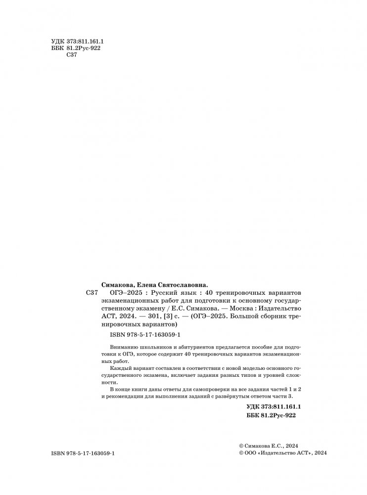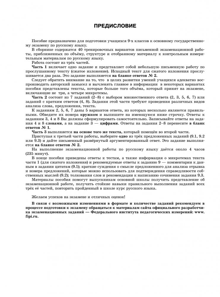 ОГЭ-2025. Русский язык. 40 тренировочных вариантов экзаменационных работ для подготовки к основному государственному экзамену