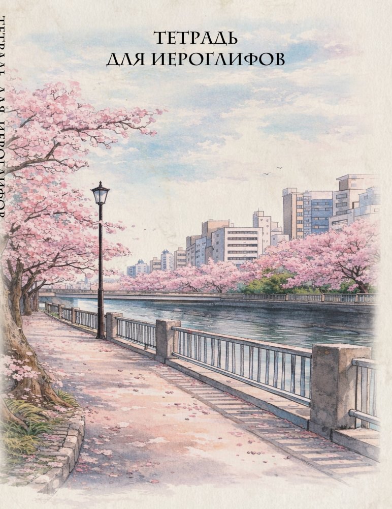 Тетрадь для иероглифов, сетка 9х9 мм. (Сакура в городе)
