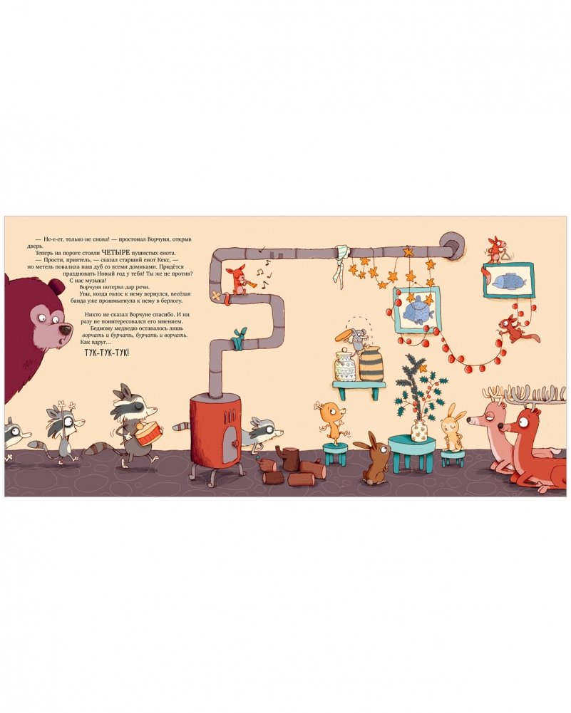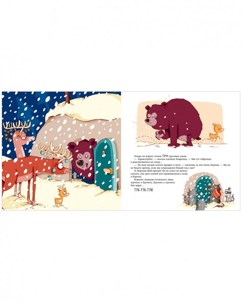 Новый год уже близко, и весь лес готовится к празднику — все, кроме медведя Ворчуни. Он твердо решил: никаких гостей, елки и суеты! В новогодний вечер мишка уютно устроился в своей тихой берлоге, как вдруг… ТУК-ТУК-ТУК!