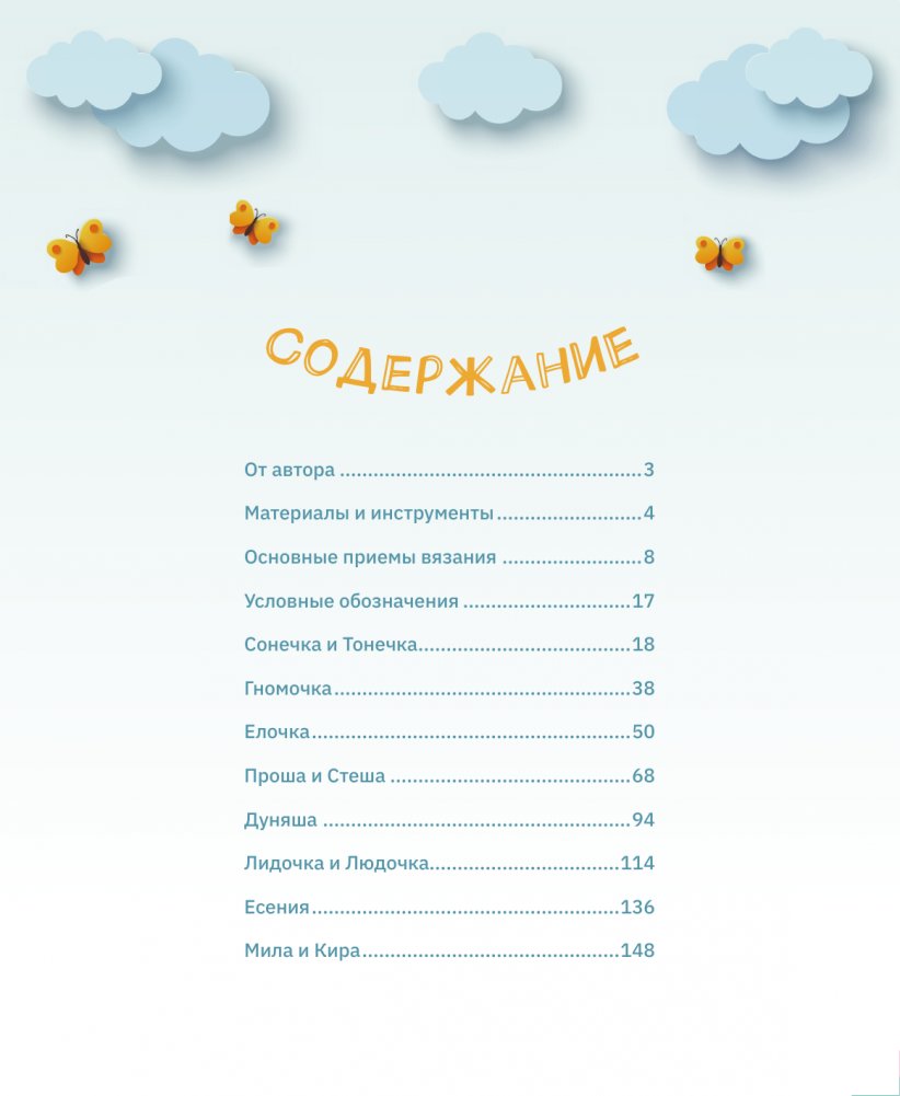 В этой книге собрано 12 мастер-классов по созданию милых кукол! Вы сможете связать Милу и Киру, Сонечку и Тонечку, Гномочку, Елочку, Прошу и Стешу, Дуняшу, Лидочку и Людочку, а также Есению.
