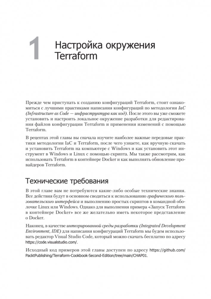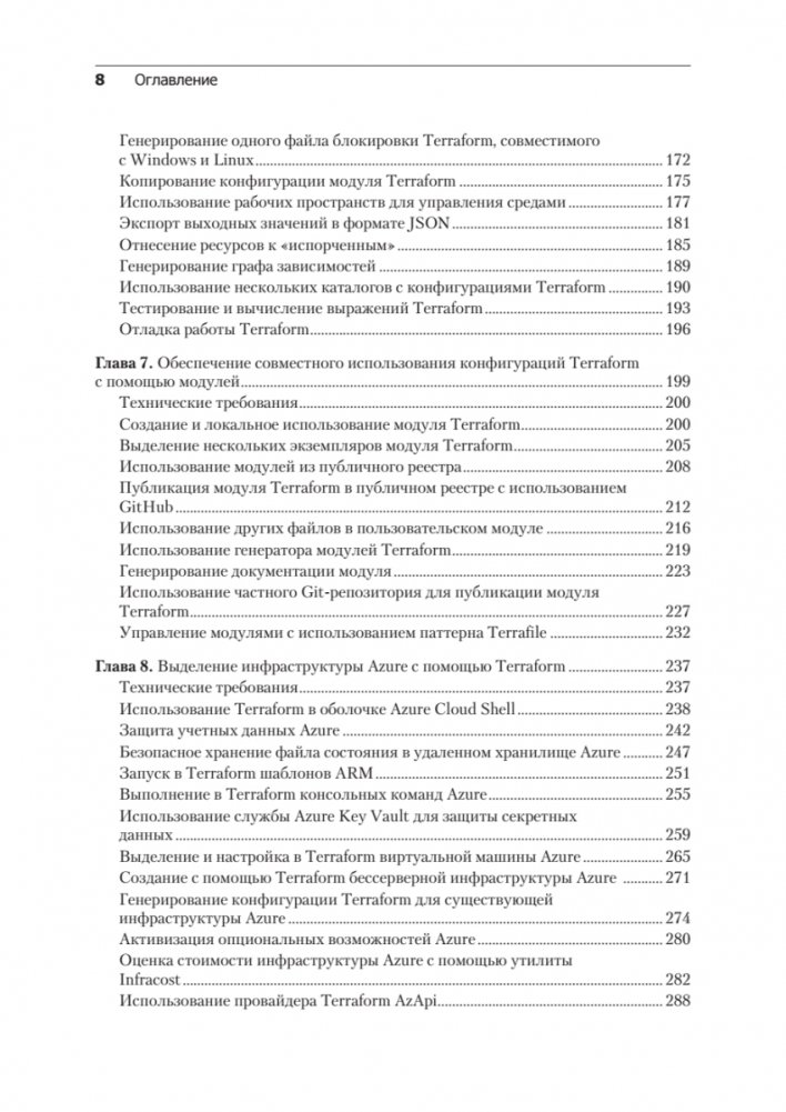 Кроме того, в издание добавлено несколько новых глав, в которых описывается использование Terraform вместе с Docker и Kubernetes, рассматриваются сложные вопросы, связанные с практикой GitOps, и объясняется, как тестировать конфигурации Terraform с помощью различных инструментов и проверять их соответствие требованиям безопасности. В последней главе исследуются вопросы устранения распространенных проблем с Terraform и предлагаются решения для часто встречающихся ошибок.