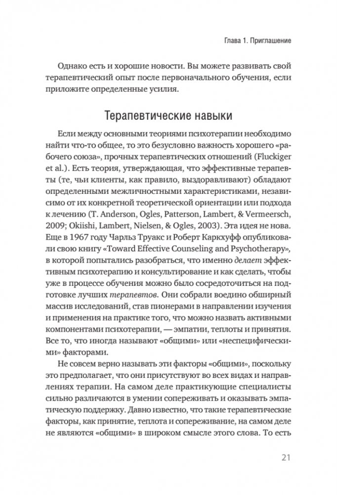Почему некоторые психотерапевты более эффективны, чем другие? А результаты их клиентов более впечатляющи? Наша книга дает ответ на эти вопросы, рассказывая о навыках общения и установках психотерапевта, которые часто упускаются из виду во время клинической подготовки. Анализируя исследования, посвященные психотерапии, проведенные в течение последних 70 лет, авторы выделили восемь главных качеств терапевта, которые улучшают результаты клиентов, независимо от используемого подхода. Если вы практикующий психотерапевт или собираетесь им стать, все необходимые рекомендации по изучению, отработке и использованию важнейших клинических навыков вы найдете в этом издании.