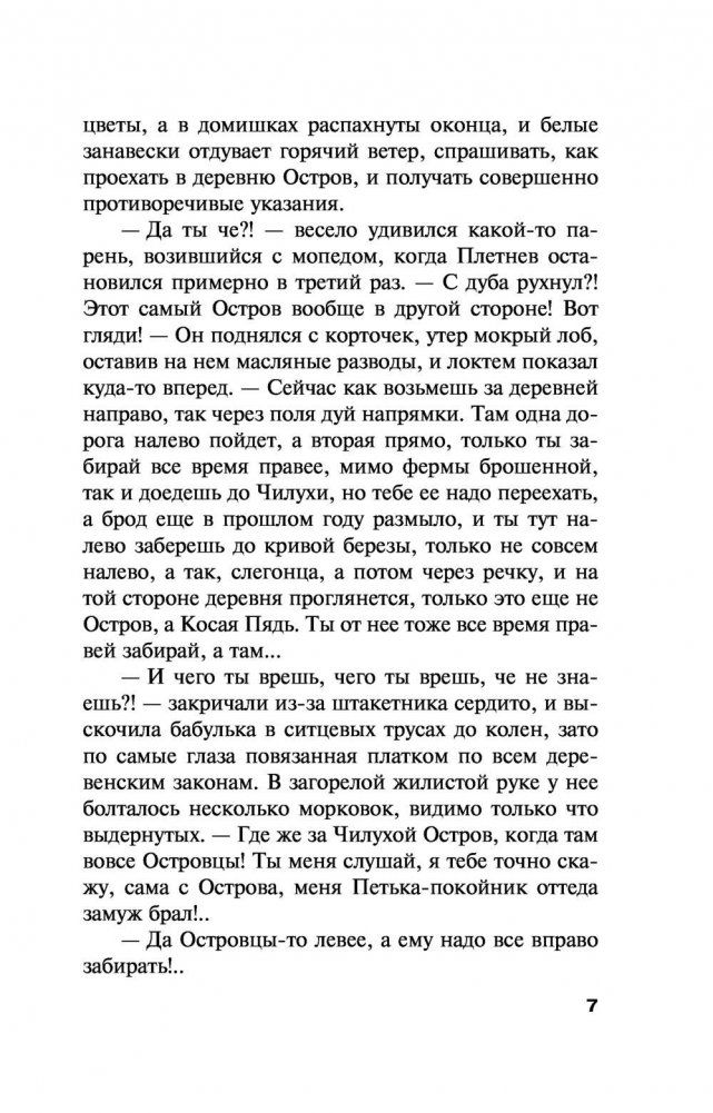 Жизнь Алексея Плетнева в самый неподходящий момент сделала кульбит, «мертвую петлю», и он оказался в совершенно незнакомом месте – деревне Остров Тверской губернии! Его прежний мир рухнул, а новый еще нужно сотворить. Ведь миры не рождаются в одночасье! У Элли в жизни все прекрасно, или почти все… Но странный человек, появившейся в деревне, где она проводит лето, привлекает ее, хотя ей вовсе не хочется им интересоваться. Убит старик егерь, сосед по деревне Остров - кто его прикончил, зачем? Это самое спокойное место на свете! Ограблен дом других соседей. Имеет ли это отношение к убийству или нет? Кому угрожает по телефону странный человек Федор Еременко? Кто и почему убил его собаку? Вся эта детективная история не имеет к Алексею Плетневу никакого отношения, и все же разбираться придется ему. Кто сказал, что миры не рождаются в одночасье?! Кажется, только так может начаться настоящая жизнь – сразу после сотворения нового мира…