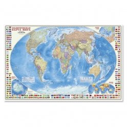 Политическая карта мира с флагами. Настенная карта (мас...
