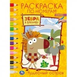 Чудесный остров. Зебра в клеточку. Раскраска по номерам