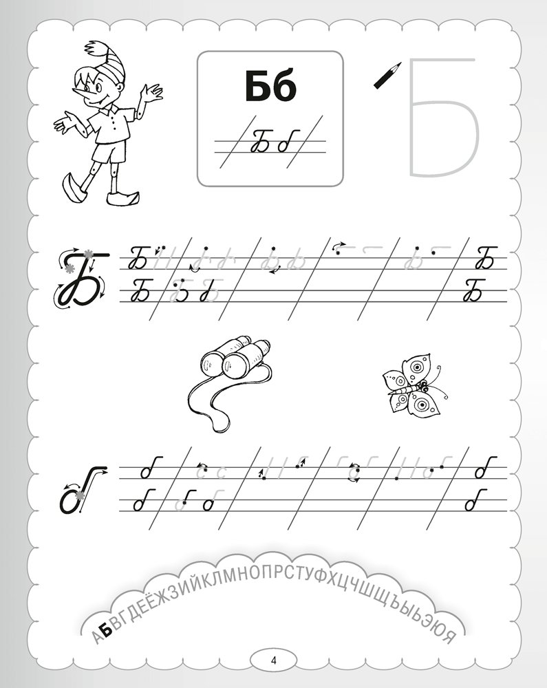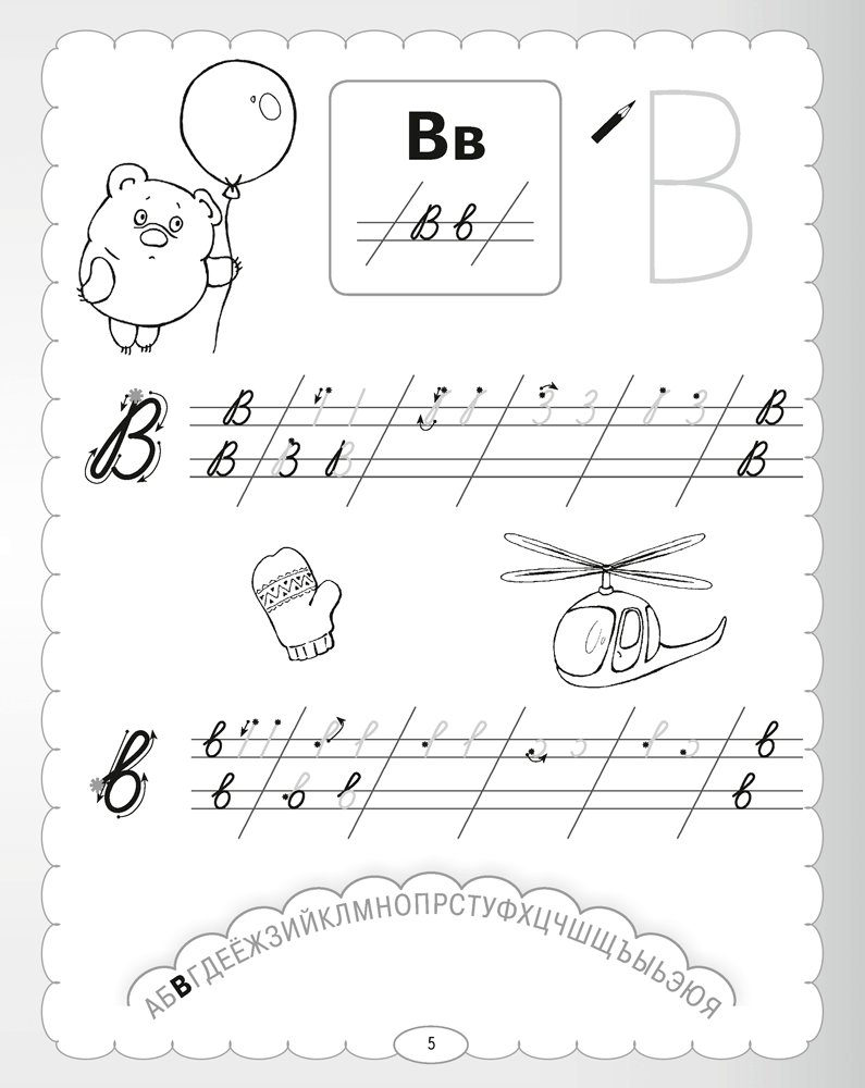 В издании представлены упражнения для отработки написания букв русского алфавита. Материал пособия окажет практическую помощь родителям и педагогам по развитию у детей мелкой моторики и координированных действий руки, по формированию графического навыка письма: ребенок научится воспроизводить форму букв, соблюдая при этом высоту и пропорции, правильный наклон.