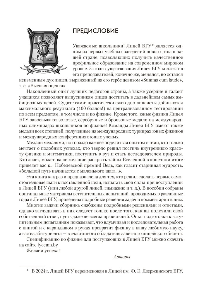 Предыдущее издание выходило под названием «Физика. Пособие для поступающих в Лицей БГУ».