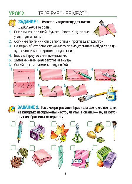 Издание из серии "Мастерская школьника" представляет собой учебный комплект для уроков трудового обучения (технологии) и состоит из 2 частей: - пошаговые инструкции с иллюстрациями, задания для обучения приемам работы с различными материалами и т.п., - листы бумаги и картона с шаблонами и чертежами, которые в процессе работы вырезаются и используются для творческих работ. Учебный комплект существенно облегчит подготовку ученика к занятиям, а учителю позволит организовать интересную и активную познавательную деятельность на уроке, а также творческую работу по интересам во внеурочное время.