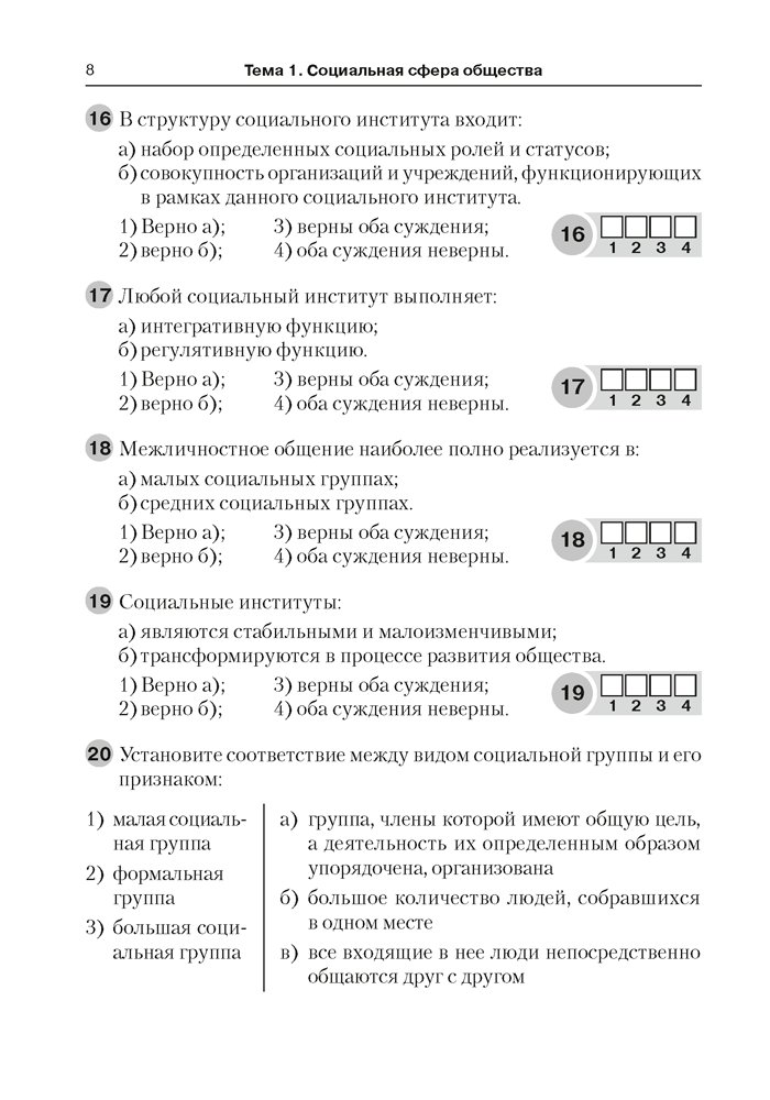 Обществоведение. 10 класс. Тестовые задания