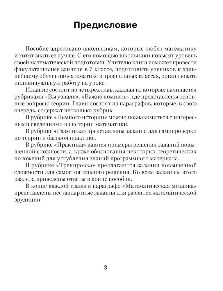 Издание является приложением к учебному пособию «Алгебра 7» авторов И. Г. Арефьевой, О. Н. Пирютко и предназначено для проведения факультативных занятий, подготовки учащихся к дальнейшему обучению в профильных классах, организации индивидуальной работы на уроке и самостоятельного повышения уровня математической подготовки.