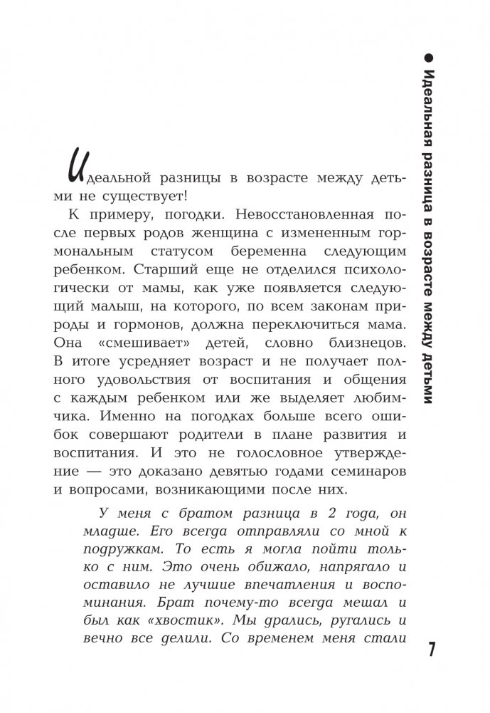 Родителям, воспитывающим более одного ребенка в семье, рано или поздно приходится задуматься об отношениях между детьми. Большинство родителей хотят вырастить братьев и сестер дружными, любящими друг друга, умеющими поддержать в различных ситуациях. Но порой это кажется непосильным трудом, особенно когда слышишь вопли из детской комнаты или разнимаешь драку. Из этой книги вы узнаете, как выстраивать личностные границы детей, чтобы каждый из них комфортно чувствовал себя и понимал, что мама любит его не меньше, чем братика или сестричку. Если вы беременны следующим ребенком, эта книга поможет вам избежать большинства ошибок родителей и подготовить старшего ребенка к появлению младшего. Если у вас уже несколько детей - эта книга откроет нюансы, устранив которые вы сможете по-новому выстроить взаимодействие с детьми.
