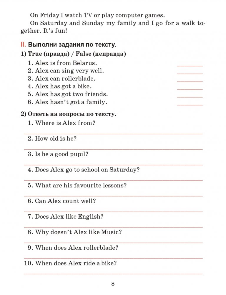Чтение — важный и необходимый компонент в обучении иностранному языку. Эта рабочая тетрадь содержит тексты на английском языке и задания к ним для учащихся 4 класса. Тексты предназначены для развития навыков чтения, а задания направлены на проверку умения понимать общее и детальное содержание прочитанного, а также извлекать конкретную информацию из текста. Последовательность изучения грамматических и лексических тем в тетради соответствует школьной программе по английскому языку. Пособие может служить дополнением к учебнику и использоваться как на уроках и факультативах, так и для самостоятельной работы дома. В конце тетради приводятся ключи с ответами.