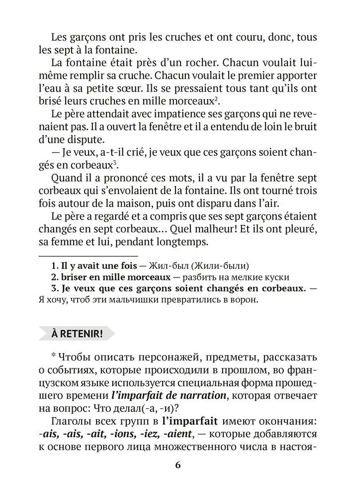 Издание содержит сказки Анри Пурра, братьев Гримм, Шарля Перро и Мари-Луиз Вэр, а также различные виды упражнений тренировочного и творческого характера, стимулирующих речевую деятельность учащихся. После каждого текста в рубрике «A retenir» предлагается повторение или объяснение явлений, необходимых для того, чтобы лучше понять прочитанное, а также расширить и углубить знания.