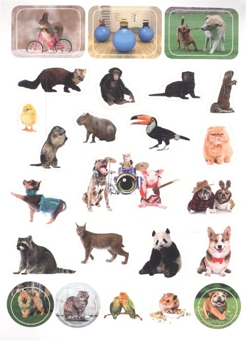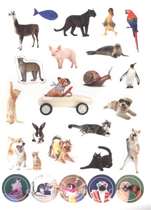 В брошюре "Забавные животные" вы найдёте милых зверят, которых любят все малыши. Есть наклейки с кошками, собаками, кроликами, хорьками и многими другими. Все наклейки хорошо отклеиваются от основы, поэтому с ними сможет играть даже маленький ребёнок.