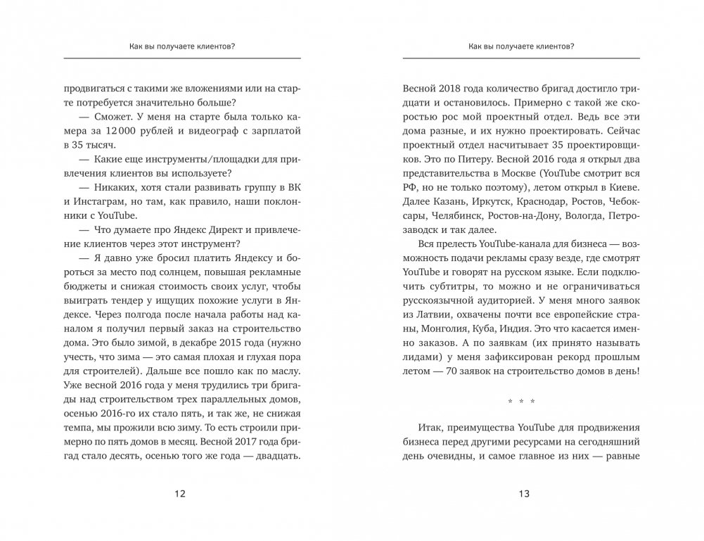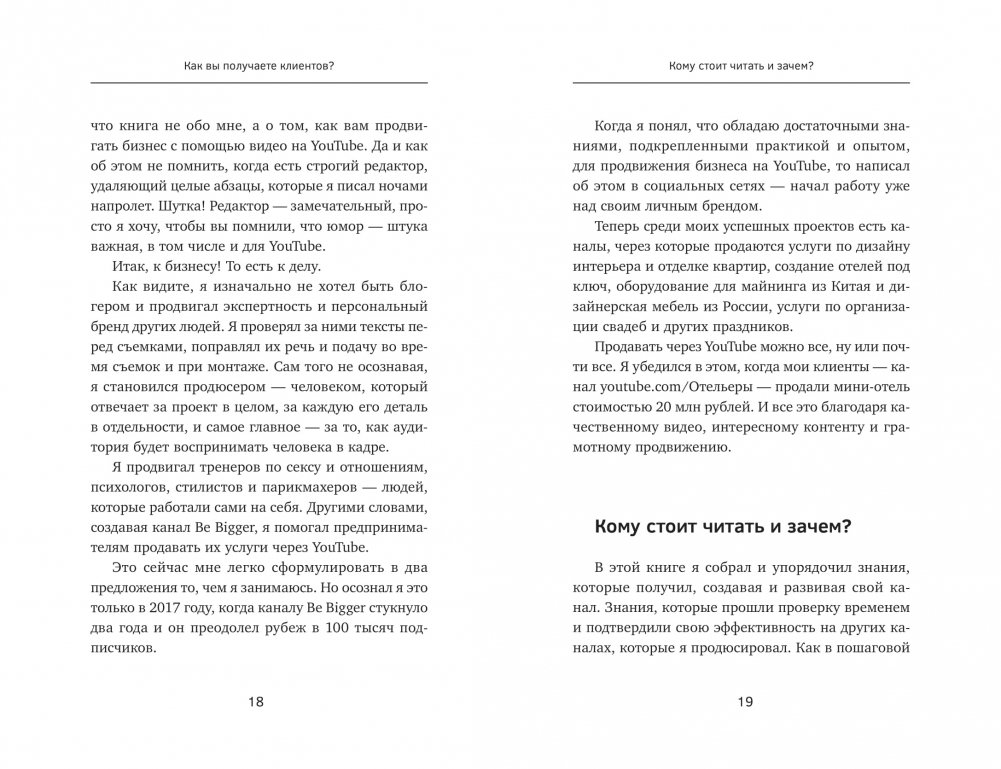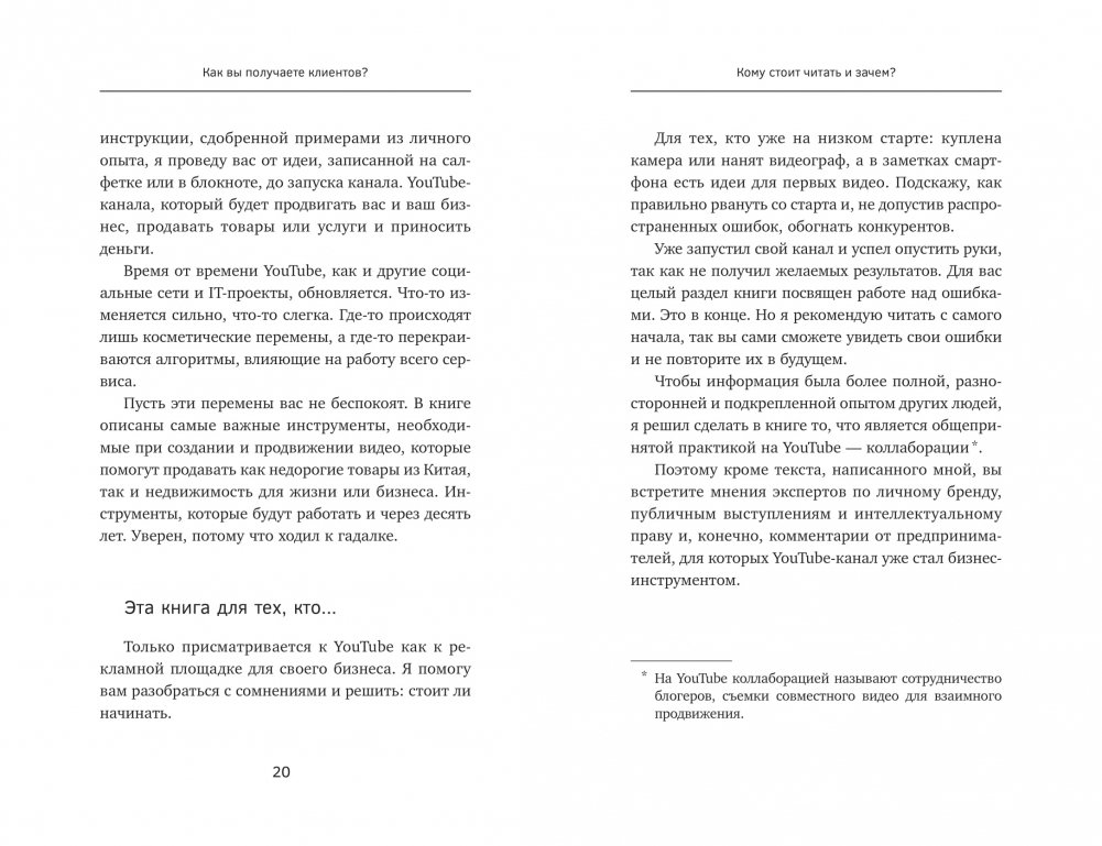 Зарабатывать, не выходя из дома — мечта миллионов! И она вполне исполнима! Испробовали популярные сервисы Яндекс.Директ и разные виды рекламы, но безрезультатно? Тогда мы идем к вам, потому что продвижение через YouTube — интересно и эффективно! Это книга от создателя каналов, которые уже принесли миллионы рублей и миллионы лайков. Алексей Шулепов — автор и продюсер YouTube-канала для мужчин Be Bigger. А это 175 тысяч подписчиков и 25 миллионов просмотров! Используя рекомендации из книги, вы сможете создать продающий канал, который приведет клиентов и принесет прибыль в любой сфере: дизайн, строительство, организация мероприятий, психология и т. д. В книге нет теории и пространных рассуждений, только точная информация, которая шаг за шагом ведет к нужному результату — продажи, новые клиенты или продвижение личного бренда. Вы получите: — правильно созданный и оформленный канал YouTube; — советы, которые помогут попасть в топ поиска; — готовые решения для самых распространенных проблем; — работу над ошибкам для тех, кто пока не может раскрутить свой канал.