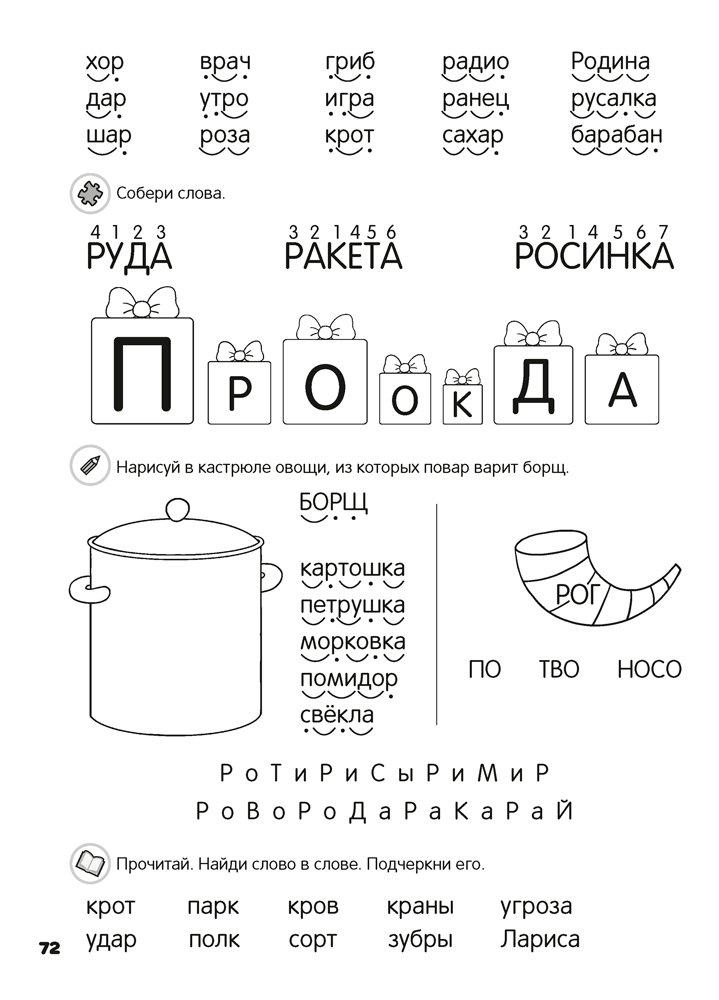 Книга познакомит детей с буквами, научит соединять буквы в слоги, читать слова, предложения и небольшие тексты, а также подготовит к курсу «Обучение чтению» в школе. Увлекательные задания, которые можно выполнять на страницах пособия, помогут в развитии речи, мышления, внимания, памяти, воображения, а также координации движений рук и мелкой моторики.