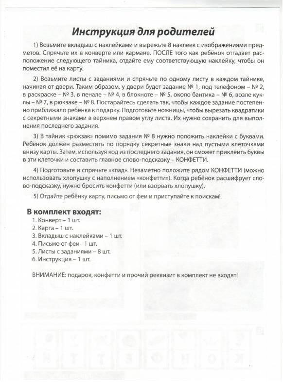 Мечтаете наполнить волшебством детский праздник? Хотите, чтобы ребёнок надолго запомнил ваш подарок? Тогда вы нашли то, что искали! Превратите простое поздравление в увлекательный квест! Спрячьте подарок и позвольте малышу отправиться на поиски своего сокровища. Ему предстоит выполнить задания, расшифровать подсказки и восстановить карту, которая подскажет правильный путь. Поверь в чудеса!