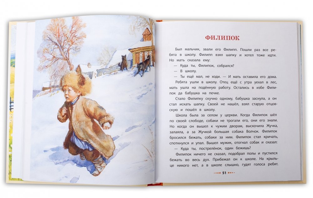 В книге собраны произведения для детей, вошедшие в "Азбуку", "Новую азбуку" и "Русские книги для чтения". Иллюстрации таких мастеров оформления книги, как В. Лосин, Н. Устинов, Е. Рачев и другие, прекрасно дополняют тексты.