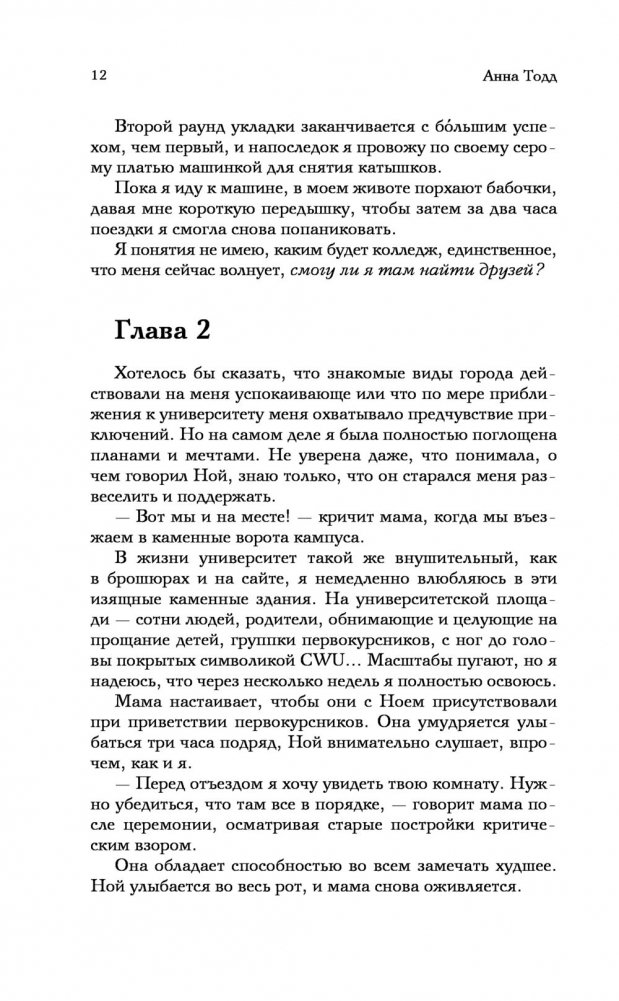 Тесса была тихой и примерной девочкой. Пока не встретила Хардина – чертовски привлекательного, по-настоящему плохого парня, которому плевать на все правила. Между ними промелькнула не просто искра, это был мощный электрический разряд. Так их жизнь навсегда разделилась на до и после…