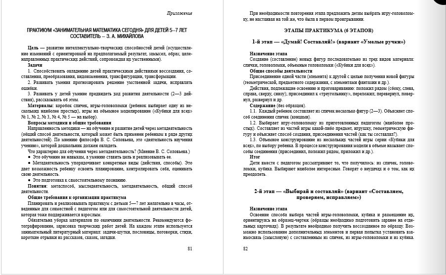 В пособии отражен опыт конструирования игровых методик по трем условно выделенным направлениям. Первое направление — познание дошкольниками свойств и отношений объектов в деятельности с блоками Дьенеша. Второе направление — использование игровых приемов при решении занимательных задач и игр-головоломок на плоскостное и объемное моделирование. Третье направление — освоение детьми количественных, числовых отношений, действий сложения и вычитания, связей и зависимостей.